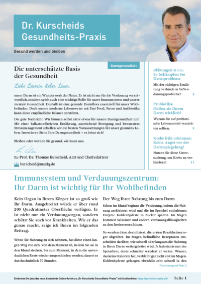 Hier finden Sie die bisher erschienenen Ausgaben von "Dr. Kurscheids Gesundheits-Praxis". So können Sie sich umfassend zu Ihren Gesundheitsfragen informieren.
