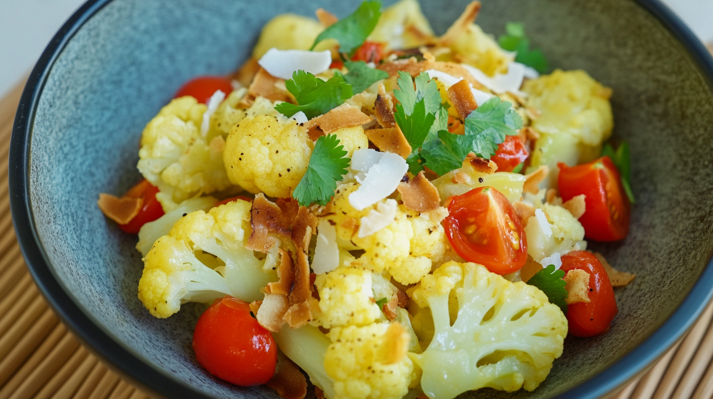 Wussten Sie, dass auch der oft langweilige Blumenkohl aromatisch und schmackhaft sein kann? Das beweisen wir heute mit diesem Blumenkohlsalat, der dank Curry und anderen Gewürzen zu einem Geschmackserlebnis wird. Ein weiteres Blumenkohl-Rezept finden Sie hier.