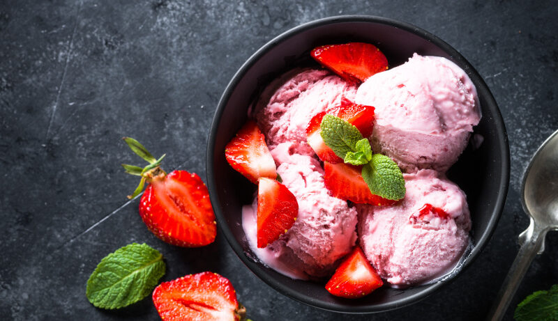 Für warme Sommertage: selbstgemachtes Erdbeereis, das blitzschnell zusammengemixt ist. Experimentieren Sie hier gerne auch mit anderen Geschmacksrichtungen und kombinieren Sie verschiedene Obstsorten. Ein weiteres Eis-Rezept finden Sie hier.