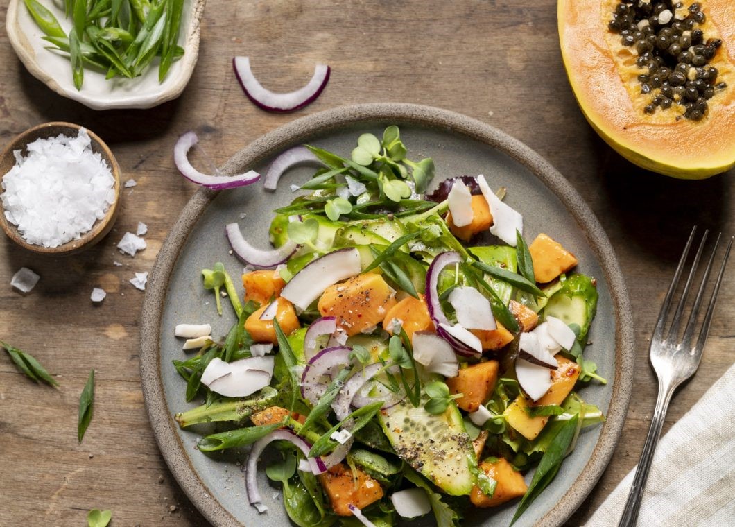Sie suchen noch nach einer frischen Salat-Idee? Dann sollten Sie diesen Papaya-Salat mit einem Hauch Kokos unbedingt ausprobieren. Hier ist noch ein Papaya-Rezept für Sie.