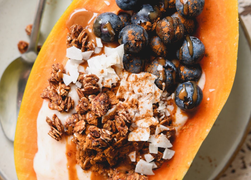 Sie haben schon öfter eine Papaya im Supermarkt gesehen, aber wissen einfach nicht, was Sie damit machen sollen? Wie wäre es dann mit dieser Papaya-Smoothie-Bowl? Die Tropenfrucht eignet sich wunderbar für ein leichtes Frühstück. Eine weitere Papaya-Idee finden Sie hier.