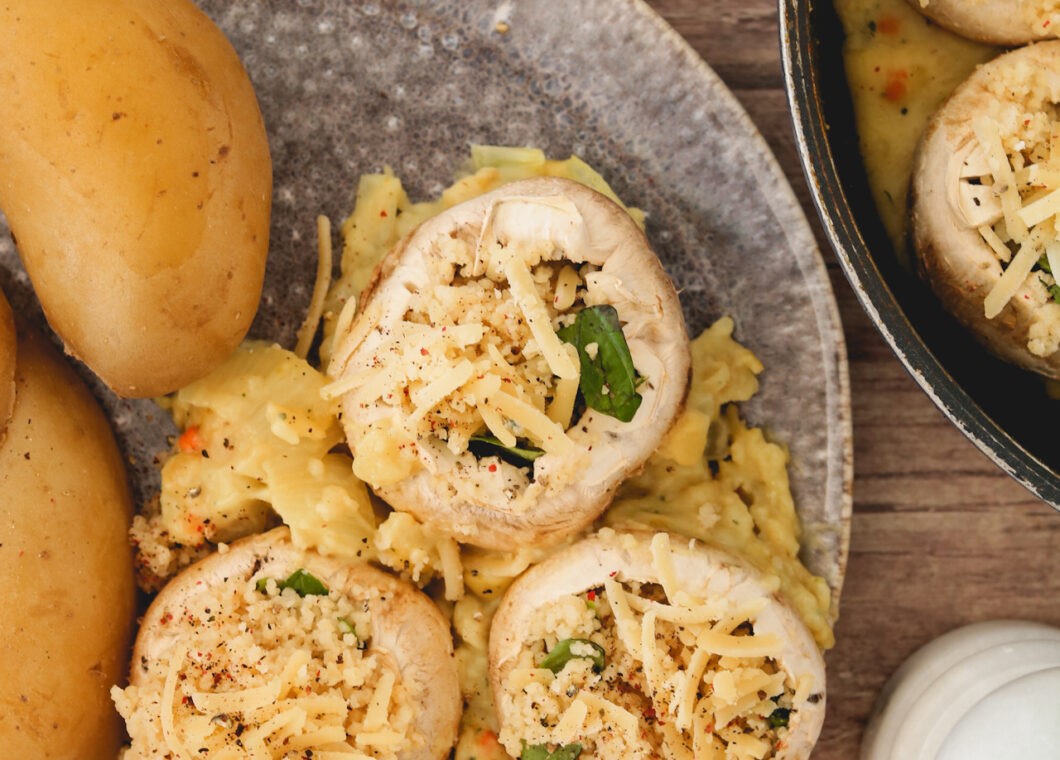 Bei uns gibt es heute köstlich gefüllte Champignons mit Käse und Kartoffeln dazu und eine leckere Rahmsoße. Bei diesem Wohlfühlessen merken Sie gar nicht, wie gesund Sie sich eigentlich gerade ernähren. Hier ist noch ein gesundes Champignon-Rezept für Sie.