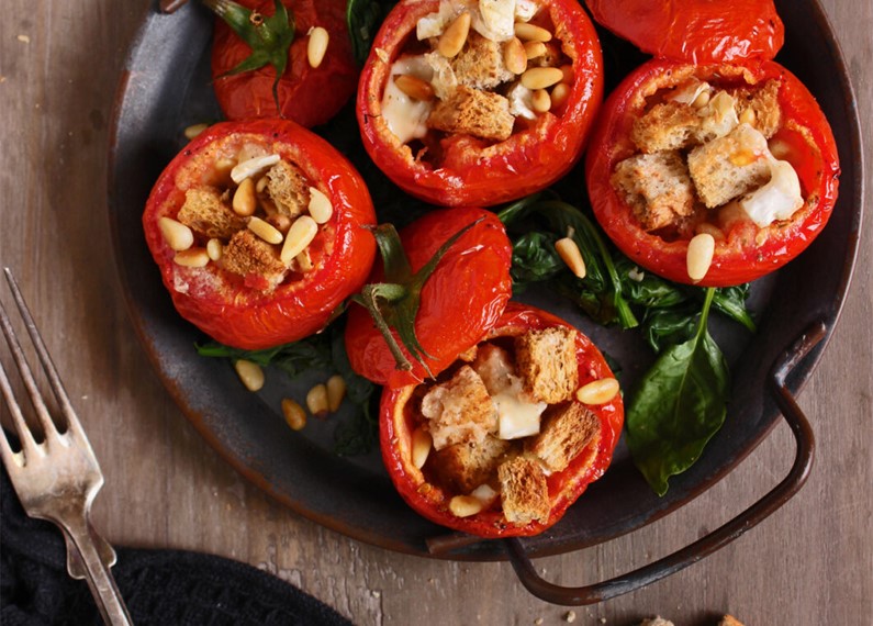 Gefüllte Tomaten im Spinatbett