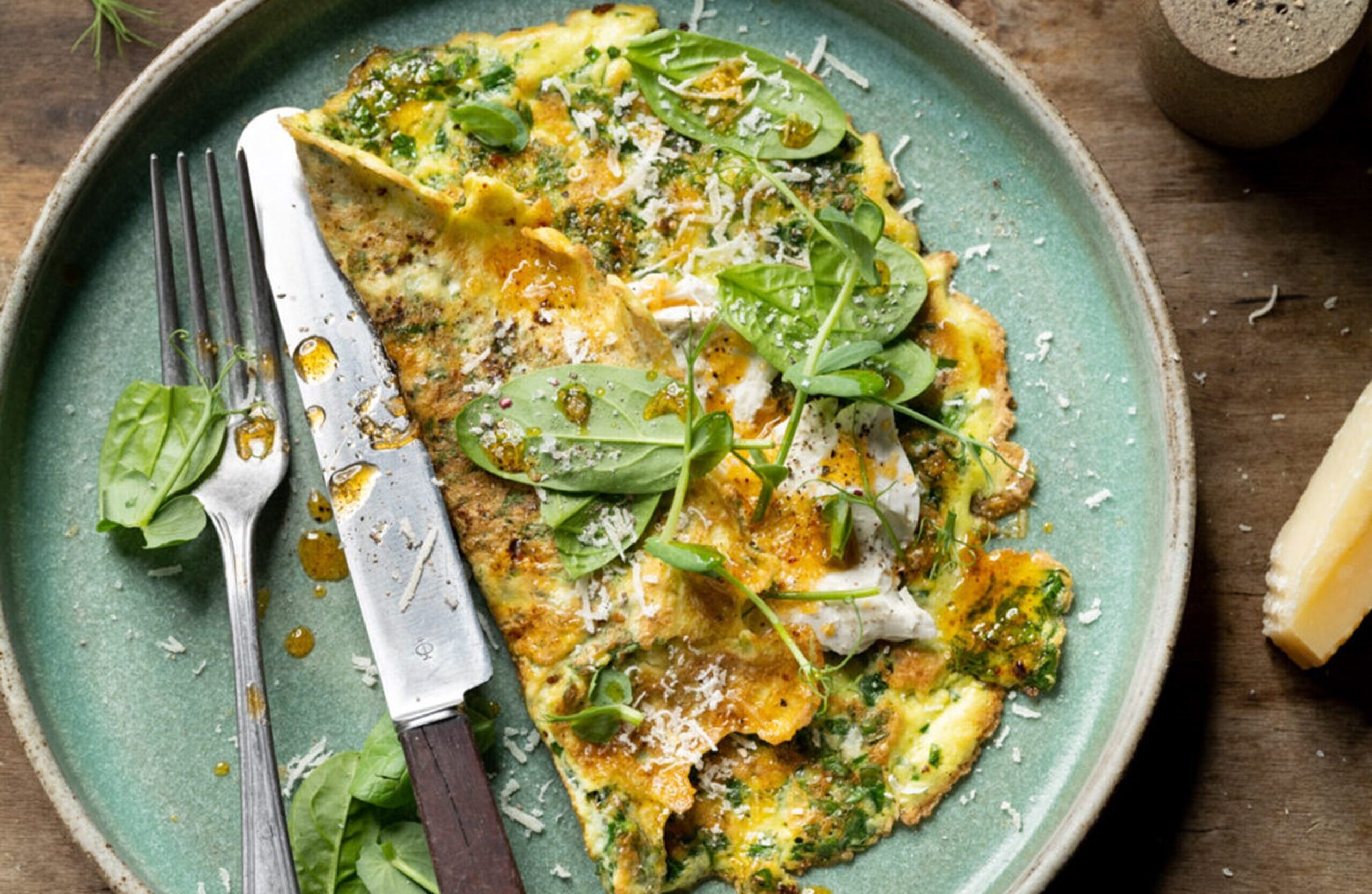 Omelett braucht nicht langweilig und eintönig sein. Dieses grüne Spinat-Omelett ist voll mit Aroma und schöner grüner Farbe! Da beginnt der Morgen doch gleich viel besser. Hier finden Sie noch ein vegetarisches Omelett.
