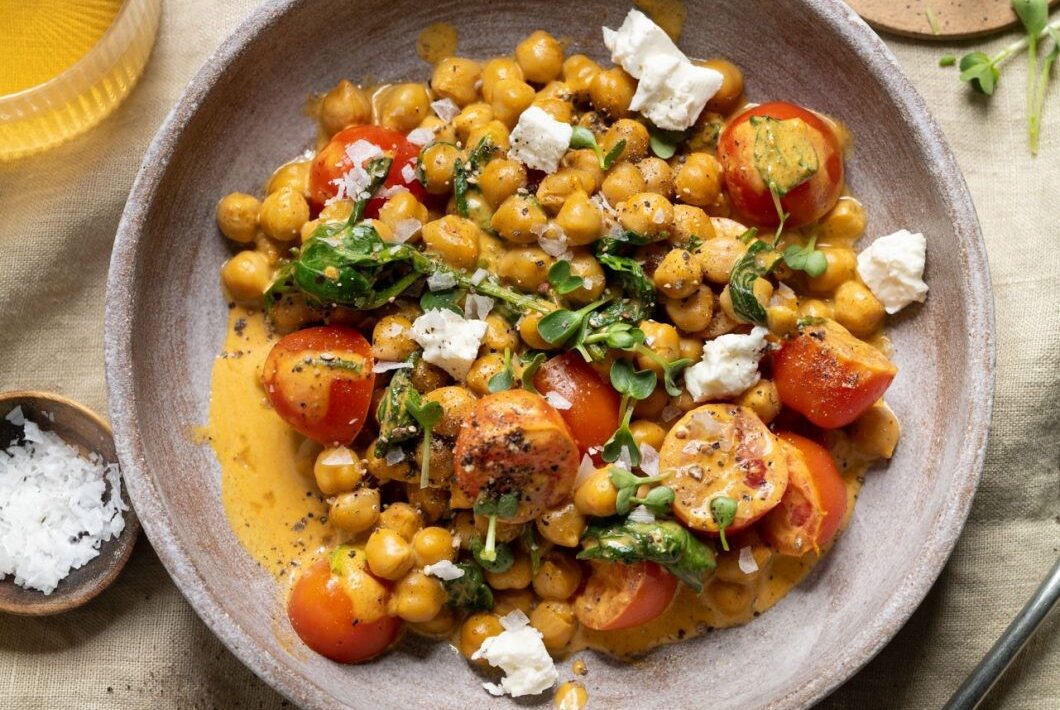 Kichererbsen-Spinat-Topf mit Feta und Tomaten