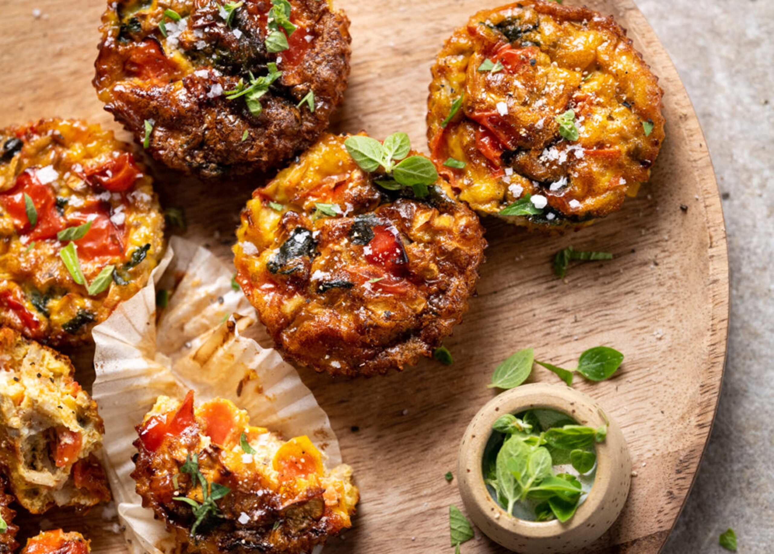 Omelette mal nicht aus der Pfanne, sondern in Muffinförmchen aus dem Backofen. Dazu gibt es noch frisches Gemüse. So lässt sich das Frühstück auch mitnehmen. Eine Variation dieses Rezepts finden Sie hier.