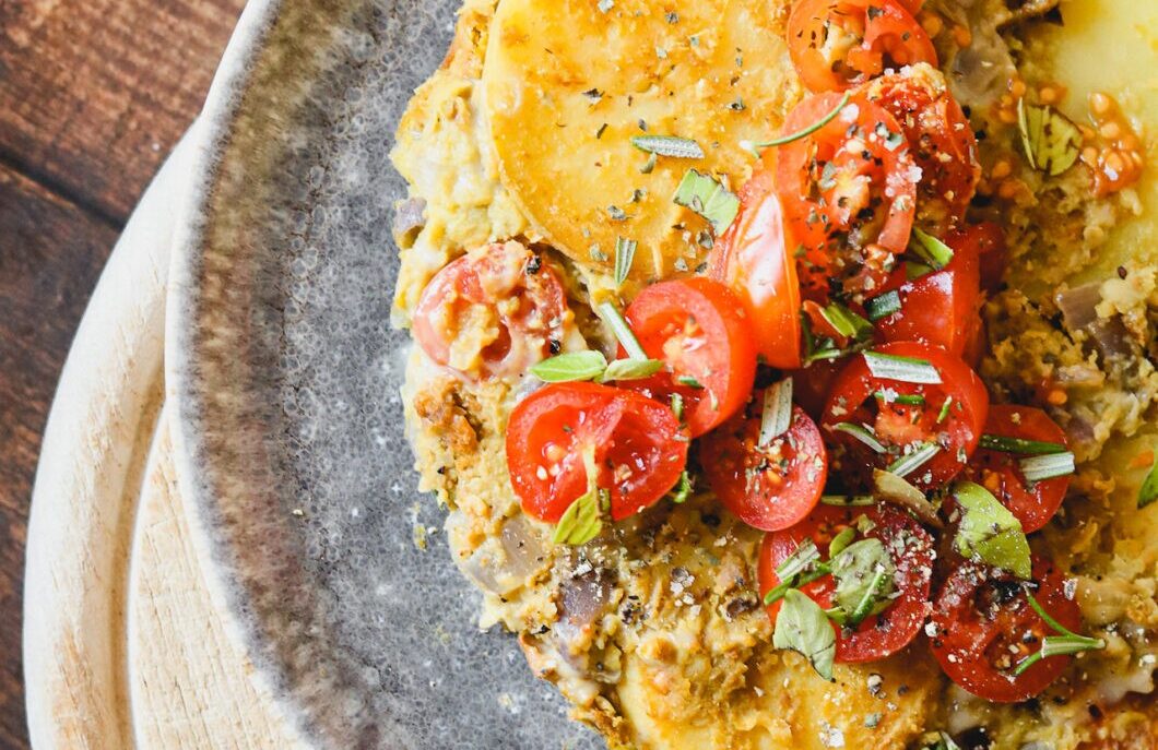 Dieses Omelett mit Kichererbsen ist eine unwiderstehliche Kombi mit leicht nussiger Note und reichlich Eiweiß. Dazu gibt es frische, leckere Tomaten. Hier ist noch eine Rezept-Idee mit Kichererbsen.