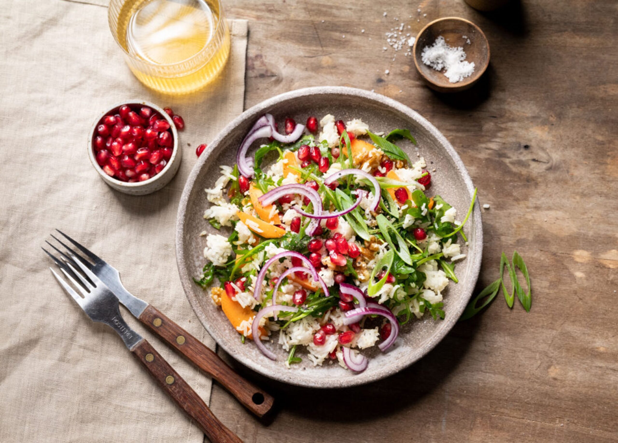 Dieser lauwarme Reis-Salat mit Rucola und Granatapfelkernen bietet neben vollem Geschmack auch einen Vitamin-A- und -K-Booster für Ihren Nährstoffhaushalt. Hier ist noch ein Reis-Rezept für Sie.
