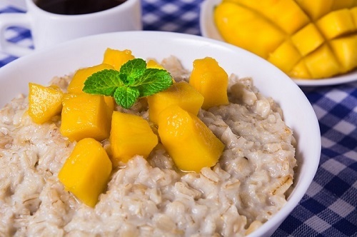 Dieses fruchtige Mango-Porridge bekommt durch den Sesam eine leicht nussige Note. Besonders gut schmeckt es mit frischer Mango. Sie können aber auch tiefgefrorene benutzen. Hier ist noch ein fruchtiges Porridge-Rezept.
