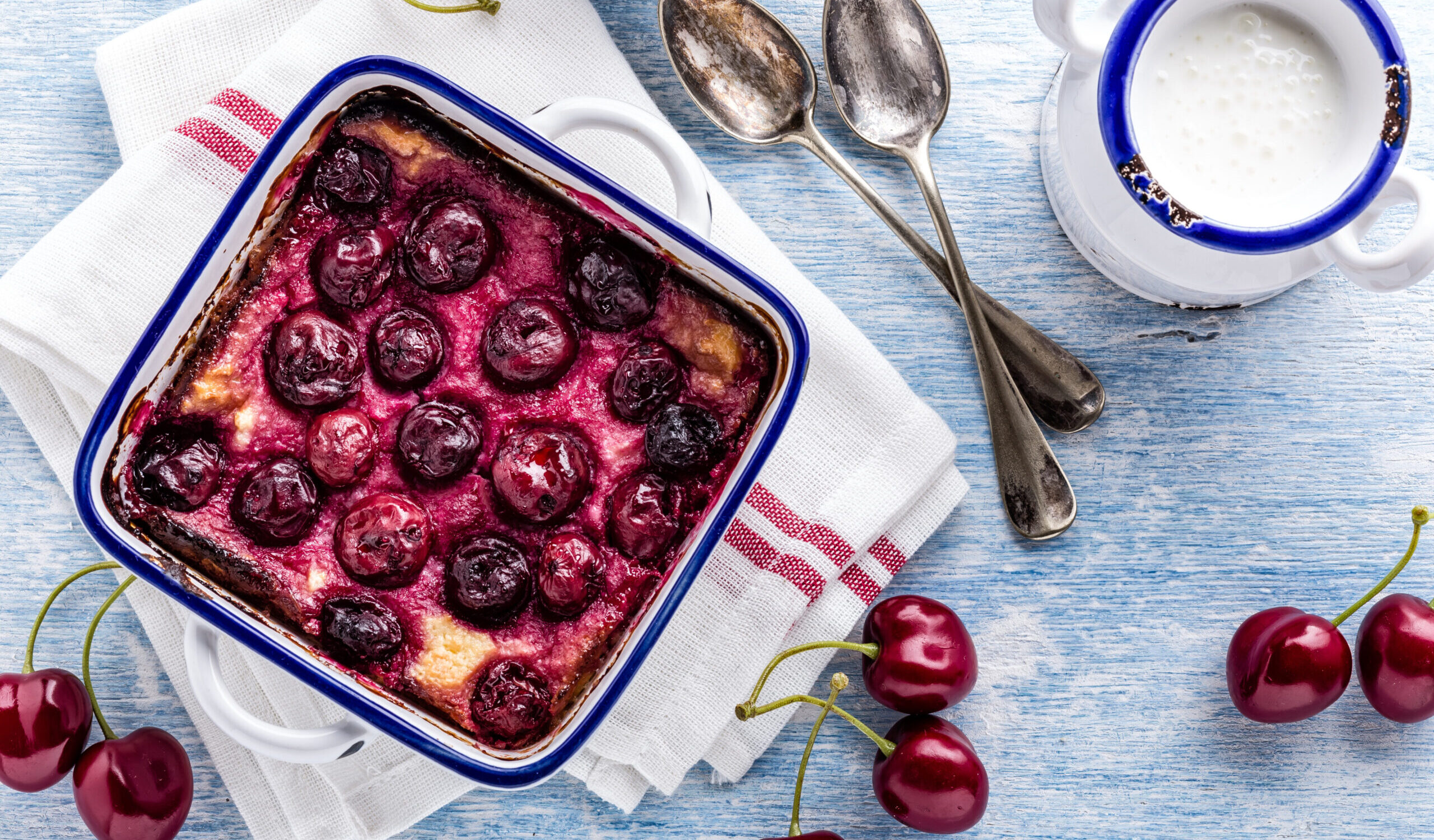 Dieser süße Auflauf mit Sauerkirschen schmeckt Kindern und Erwachsenen. Dabei ist er überraschend gesund mit wenig Kohlenhydraten und reich an Eiweiß. Die Nährwertangaben gelten für eine Portion vom gesamten Auflauf. Hier finden Sie noch einen süßen Auflauf.